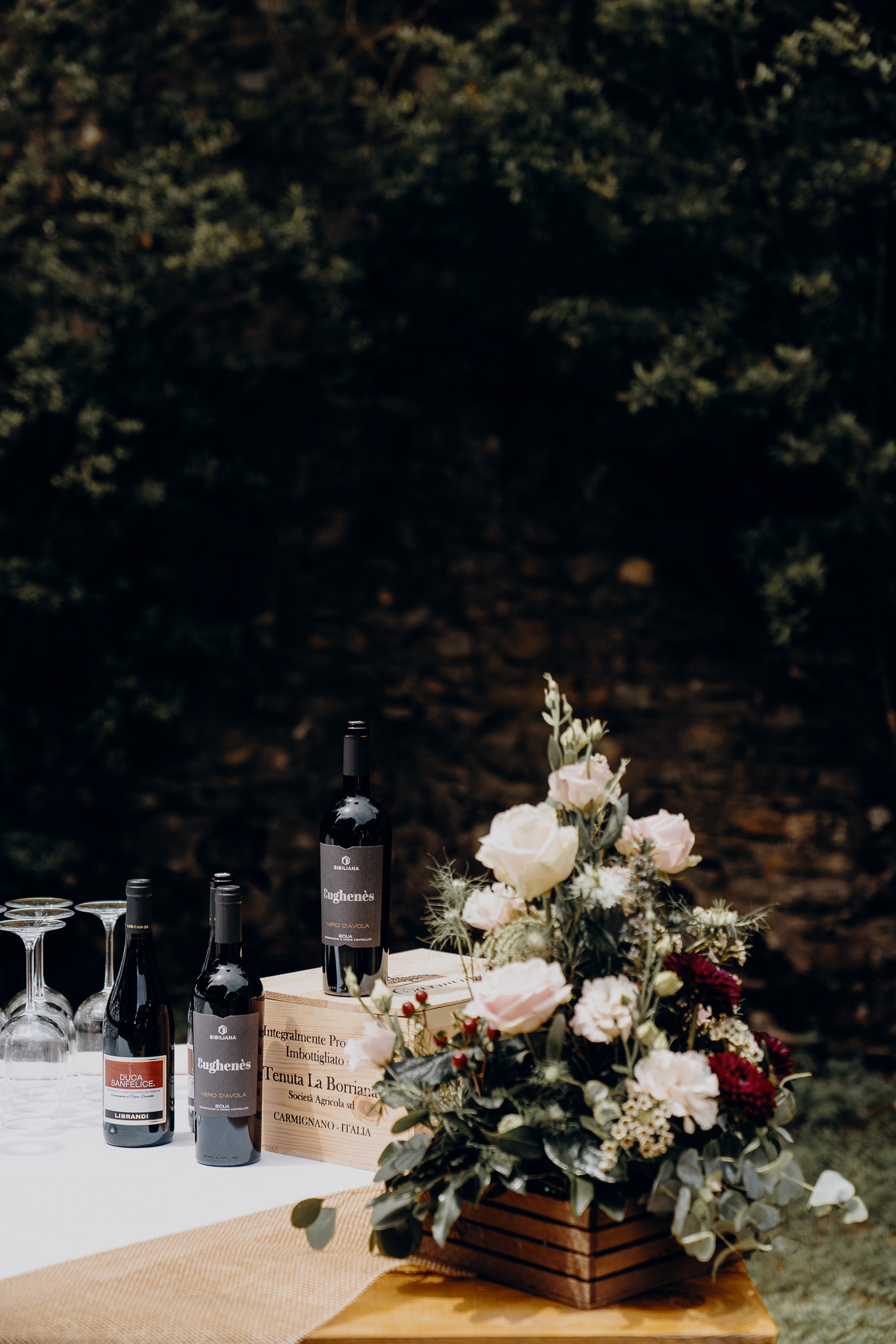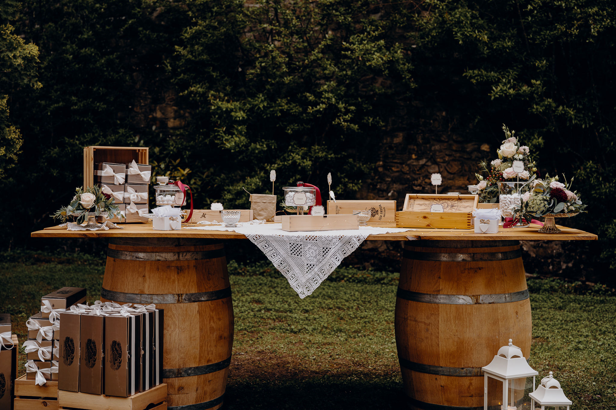 Aspettavo da tempo, un matrimonio a tema vino, ed eccolo! Mi sono divertita con Laura e Germano a realizzare e organizzare ogni più piccolo dettaglio, i segnatavoli con i tappi, il tableau con un antico portabottiglie e per finire la confettata sulle botti e come contenitori le scatole in legno delle bottiglie. E poi cosa vogliamo dire del cake topper personalizzato con i tappi!